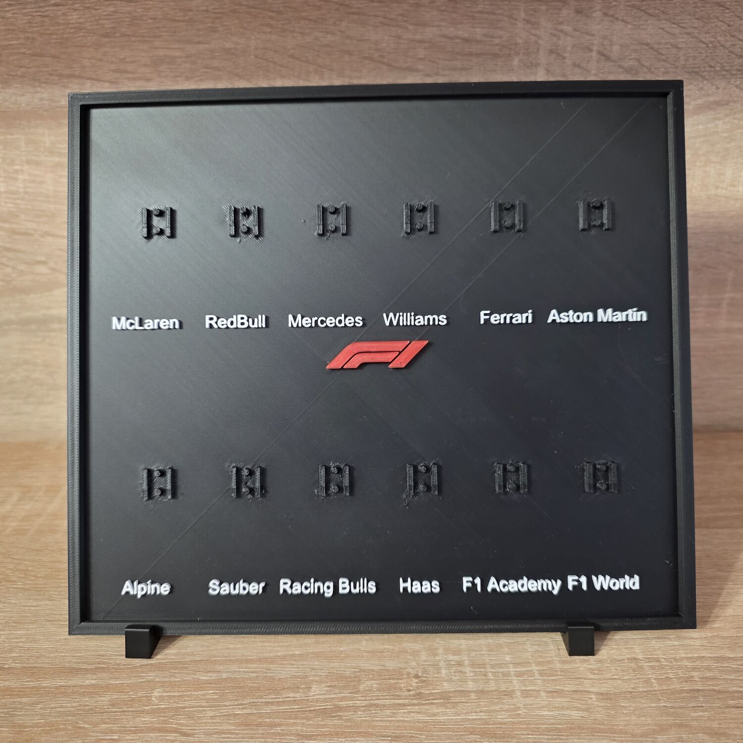 Această ramă de expunere imprimată 3D este creată special pentru a pune în valoare fiecare detaliu al setului tău preferat. Cu un design modern în alb și negru se potrivește perfect pe birou, raft sau în vitrină.Sistemul de prindere asigură o fixare stabilă a mașinilor — acestea rămân la locul lor chiar și atunci când întorci suportul. Rama este deschisă, oferind acces ușor la piese, iar suportul integrat o menține ferm pe suprafețe plane. Elegantă, practică și ușor de întreținut, este alegerea ideală pentru orice fan LEGO care vrea să expună setul cu stil.