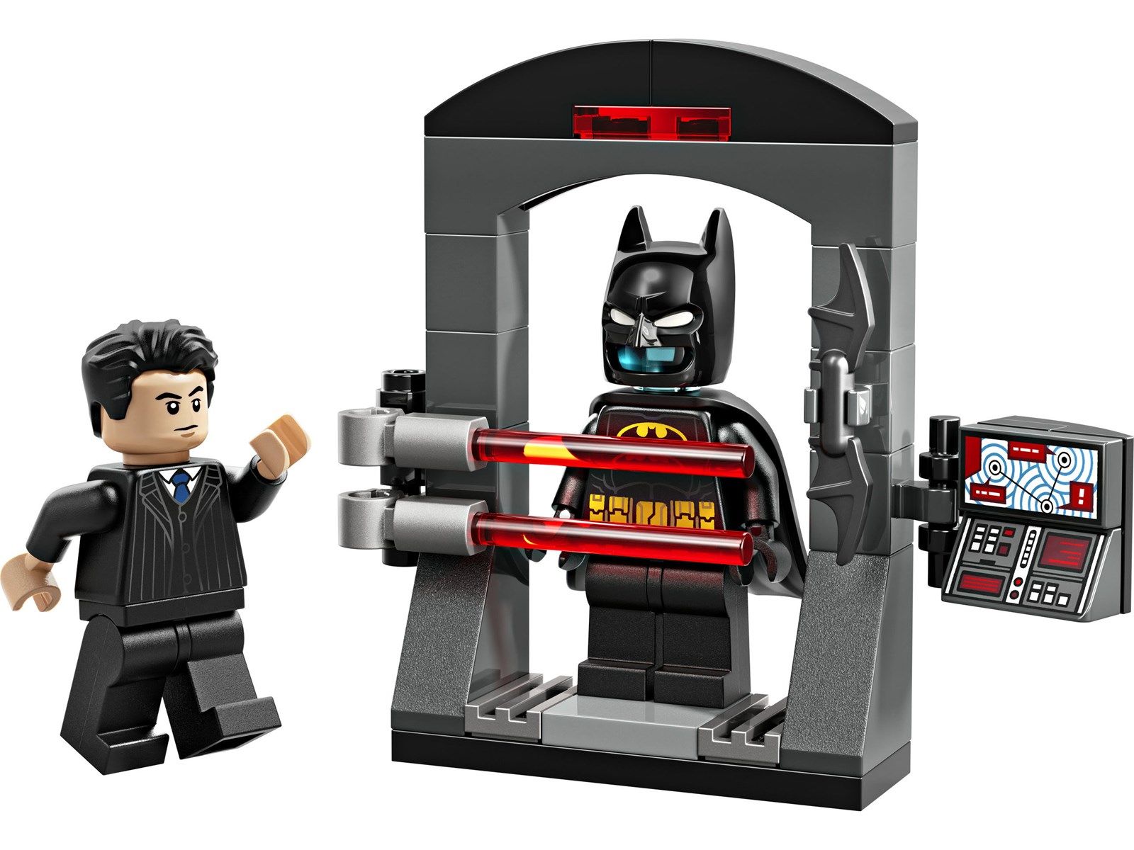 În Batcave™, Bruce Wayne™ lucrează la Batcomputer. Batcostumul său este în apropiere, păzit cu raze laser. Pentru a ajunge la costum, copiii trebuie să deblocheze toate razele.