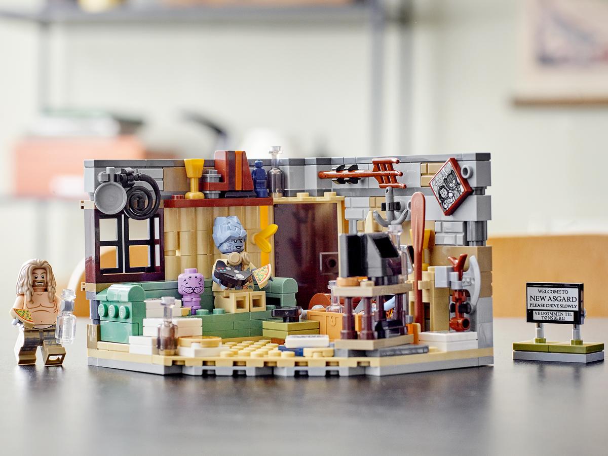 Această recreere detaliată a uimitoarei case de pe Noul Asgard a lui Thor include 2 minifigurine – Bro Thor și Korg – un Miek construibil și o mulțime de elemente și accesorii care să inspire distracție nesfârșită de joacă pe roluri, incluzând Stormbreaker, o consolă de jocuri, canapea, ecran TV și cutii de pizza.