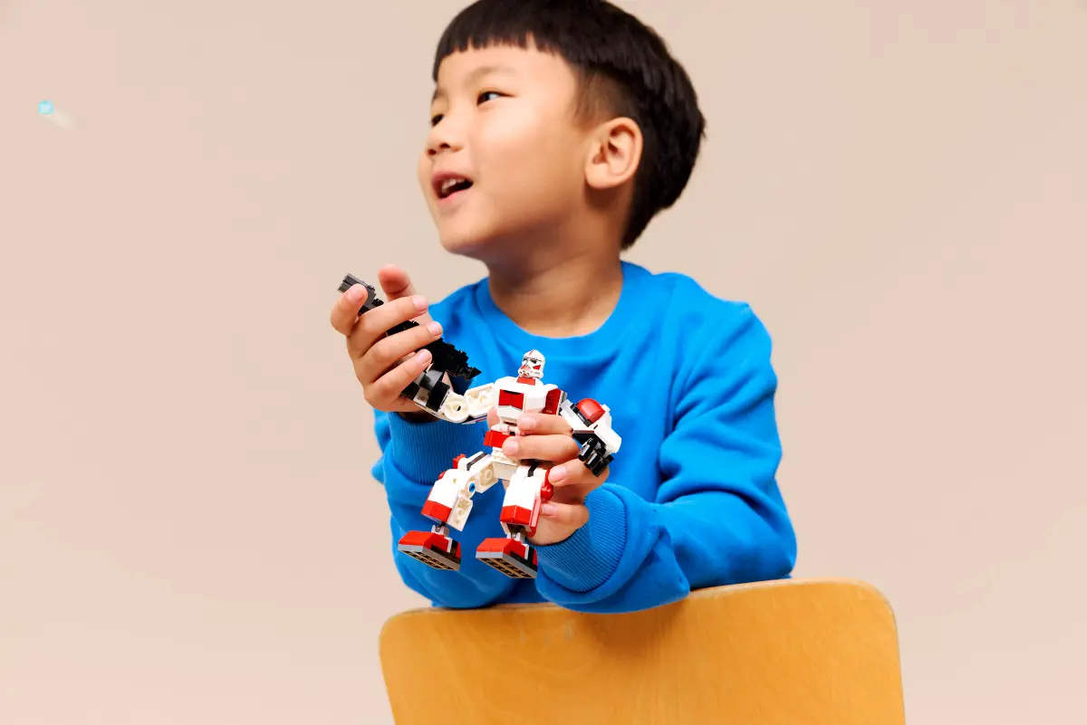 - MINIFIGURINĂ LEGO® STAR WARS™ – Plasează minifigurina LEGO Soldat clonă de șoc în cockpitul robotului în armură și prinde-i pușca explozor de spatele robotului
