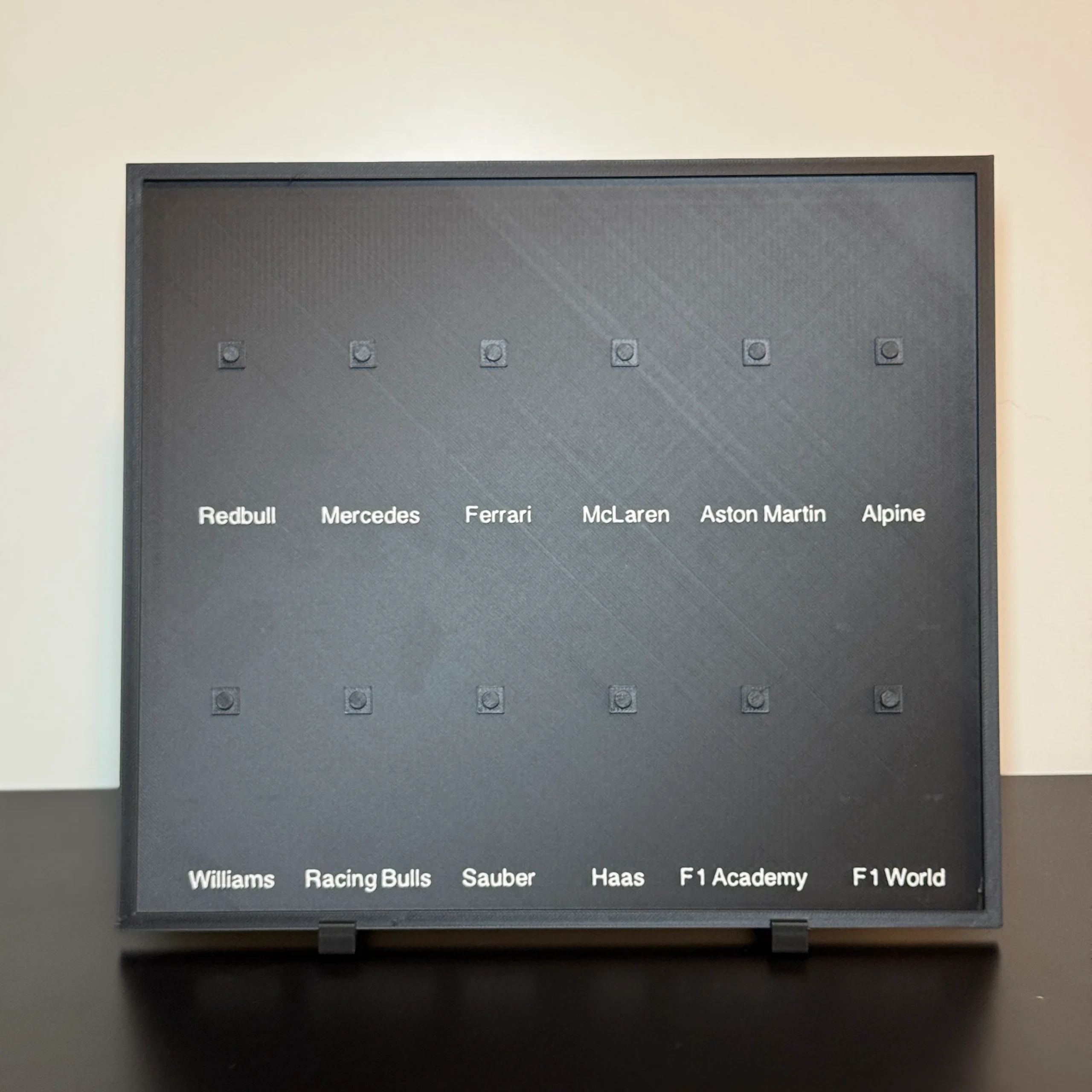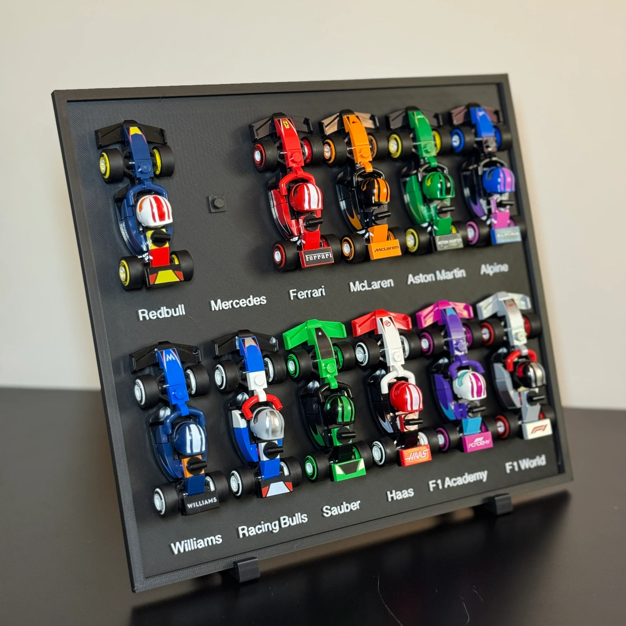 Sistemul de prindere de tip LEGO asigură o fixare stabilă a mașinilor — acestea rămân la locul lor chiar și atunci când întorci suportul. Rama este deschisă, oferind acces ușor la piese, iar suportul integrat o menține ferm pe suprafețe plane. Elegantă, practică și ușor de întreținut, este alegerea ideală pentru orice fan LEGO care vrea să expună setul cu stil.